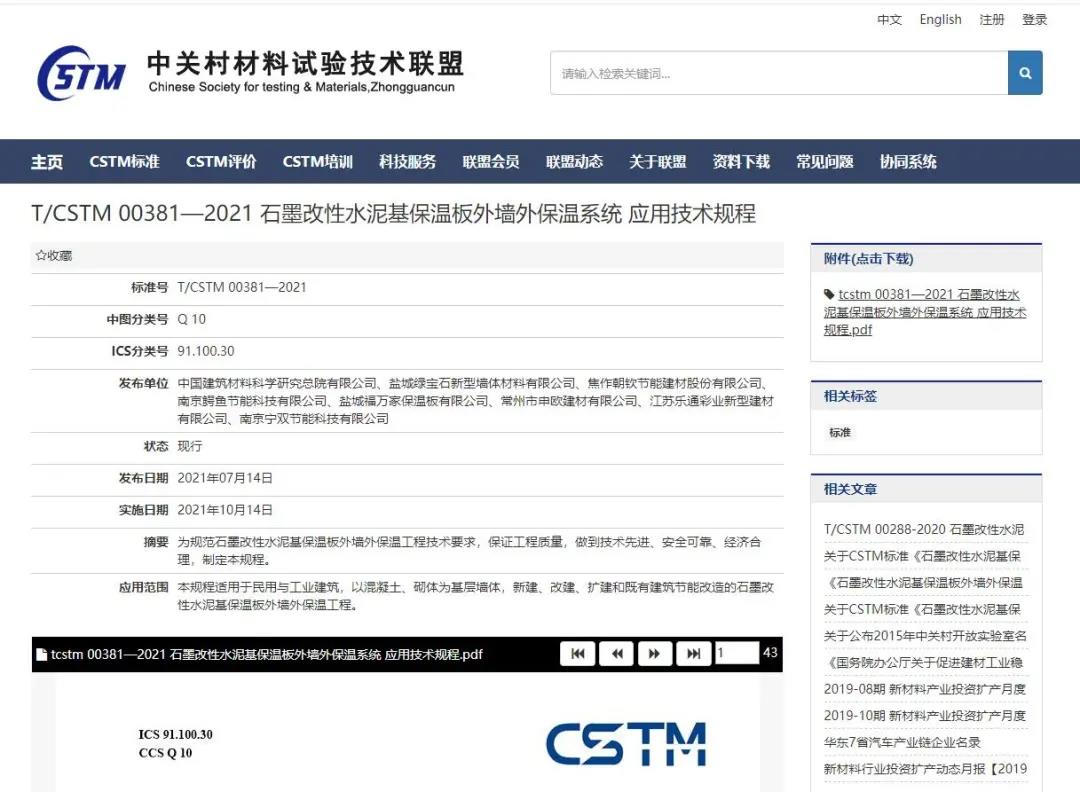 [【新聞】CSTM團體標準《石墨改性水泥基保溫板外墻外保溫系統應用技術規程》已正式發布!]
